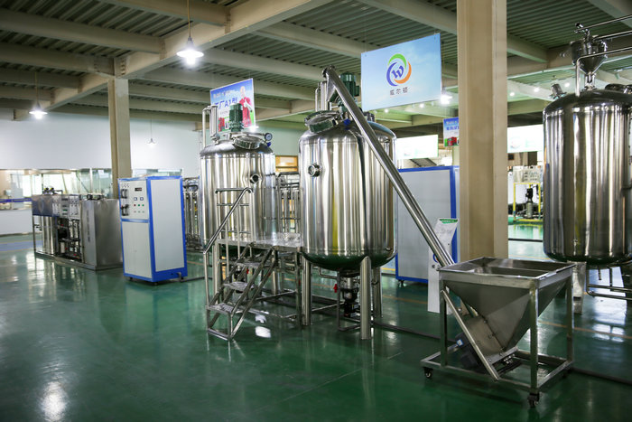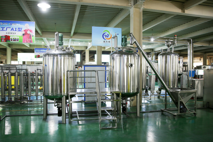 采用流水生產線,從吹瓶到原料調配,自動灌裝,包裝直至出成品,一氣呵成。 設備從大型,中型,小型,設備齊全,滿足不同客戶的辦廠需求.